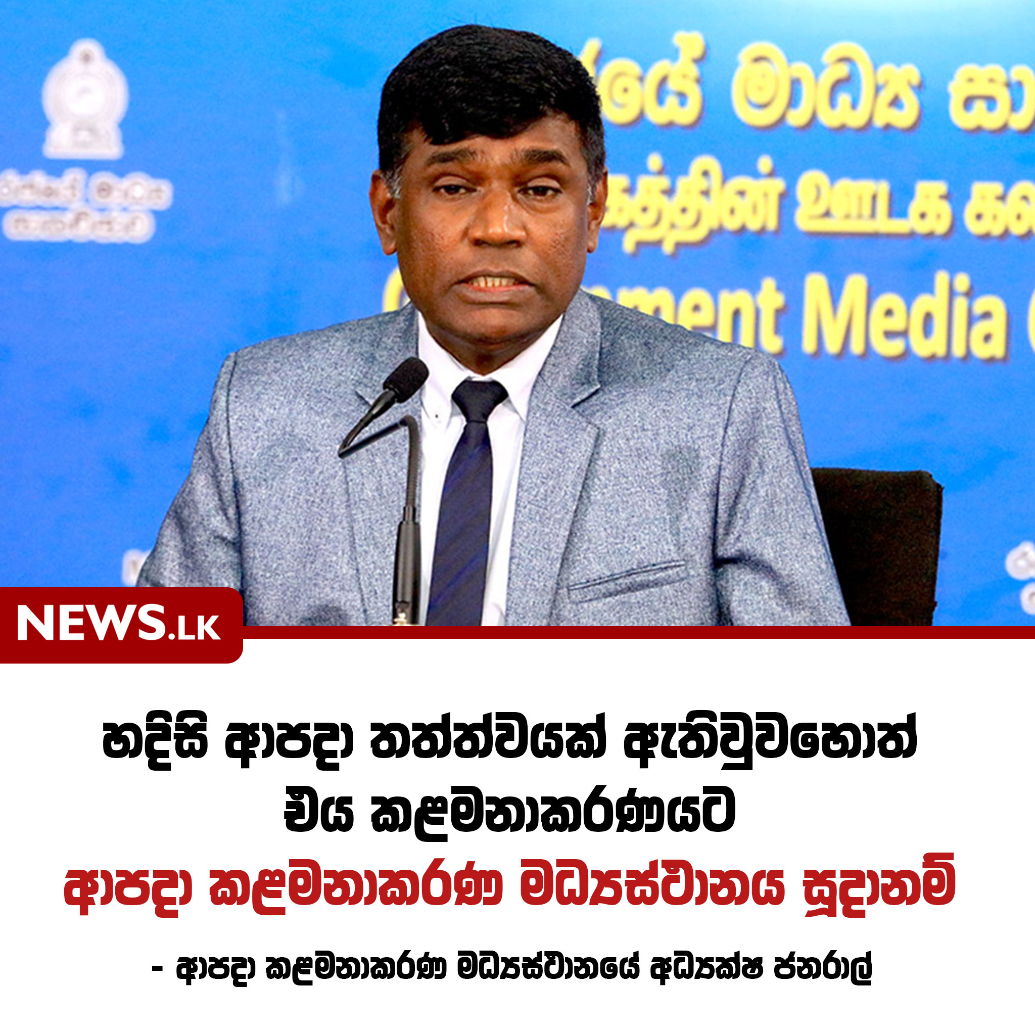 රට තුළ හදිසි ආපදා තත්ත්වයක් ඇතිවුවහොත් එය කළමනාකරණයට ආපදා කළමනාකරණ මධ්යස්ථානය මේ වන විටත් ක්රියාත්මකව ඇතැයි ආපදා කළමනාකරණ මධ්යස්ථානයේ අධ්යක්ෂ ජනරාල්, විශ්රාමික මේජර් ජනරාල් සම්පත් කොටුවේගොඩ මහතා පවසයි.